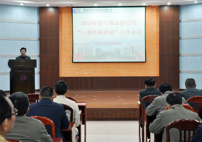 按照市國資委部署要求,2017年3月16日,公司召開2016年度干部選拔任用工作“一報告兩評議”會議,全體高、中層管理人員共98名參加了會議,漳州市國資委政治部張潔到會監(jiān)督指導(dǎo)。